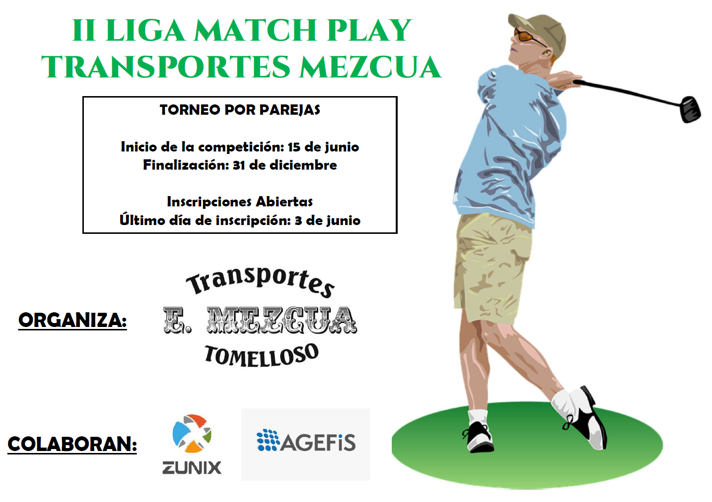 II LIGA MATCH PLAY TRANSPORTES EMILIO MEZCUA II LIGA MATCH PLAY SOCIOS CGT / TORNEO POR PAREJAS Fecha: 26 de Mayo 2021Lugar: CAMPOS LARGOS.Organiza: CLUB DE GOLF TOMELLOSO INSCRIPCIÓN INSCRITOS EN EL EVENTO INFORMACIÓN DEL EVENTO INSCRIPCIÓN II LIGA MATCH PLAY TRANSPORTES EMILIO MEZCUA Jugador 1 Nombre y apellidos* Email* Teléfono Licencia* Handicap* Jugador 2 Nombre y apellidos* Email* Teléfono Licencia* Handicap* Inscribirse Gracias por su inscripción, se ha realizado correctamente!!! El club de golf le mantendrá informado de cualquier cambio. Please turn on javascript to submit your data. Thank you! INSCRITOS EN EL EVENTO INFORMACIÓN DEL EVENTO